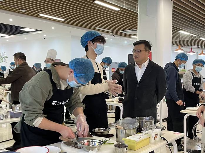 11月12日下午,由后勤管理处、学生工作处联合江苏翌桦餐饮有限公司主办的“妙手烹佳肴 共享好食光”第六期厨艺小课堂在静湖餐厅一楼顺利开课,40余名学子齐聚现场。校党委副书记、校长张兵亲临观摩指导,与同学们共品烹饪乐趣。