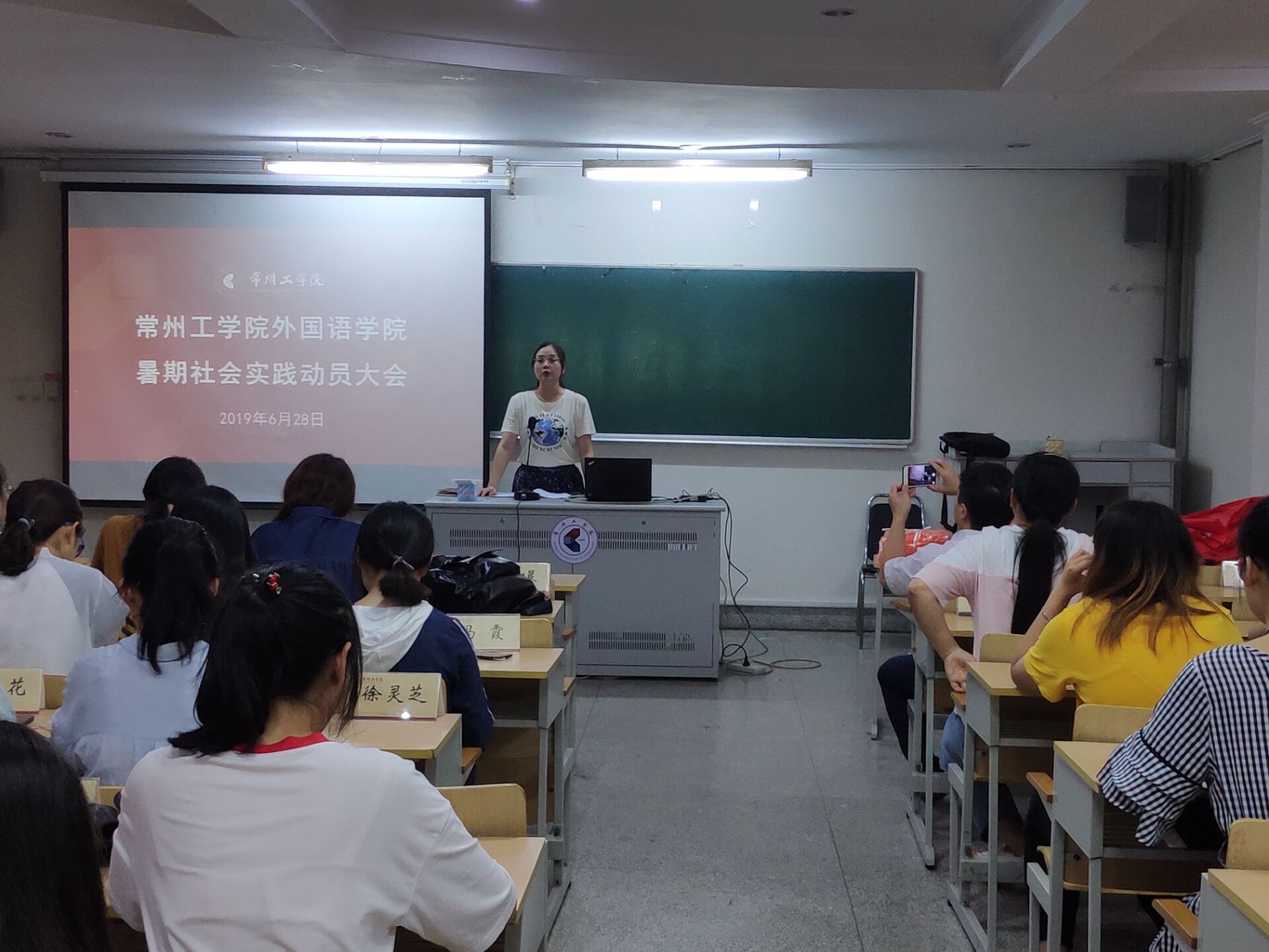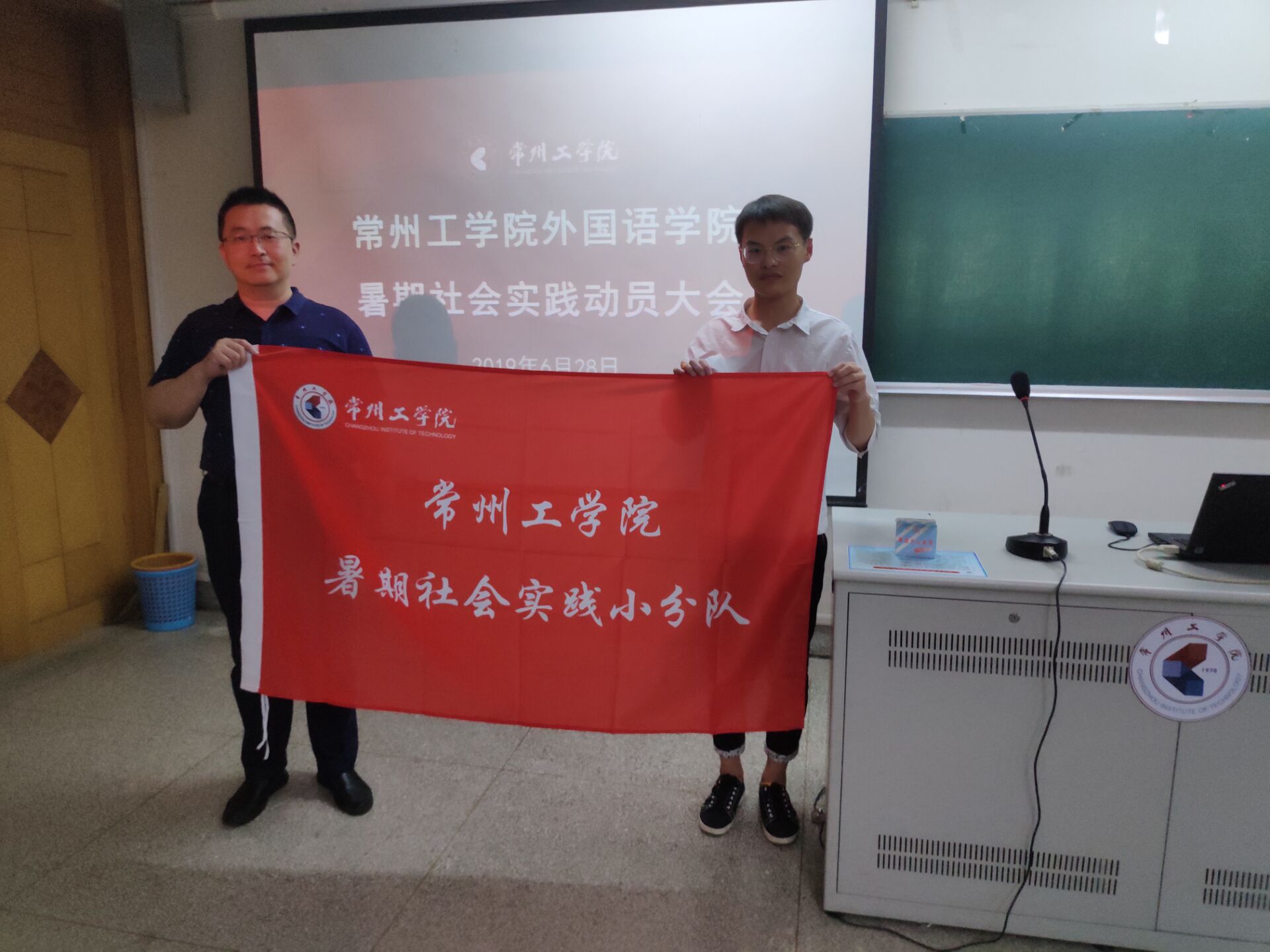 6月28日,外国语学院举行2019年暑期社会实践动员大会。校院两级暑期社会实践小分队分别接受授旗。