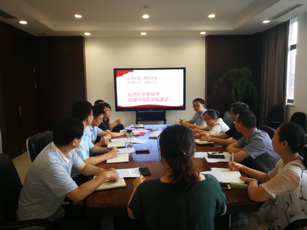 7月1日下午, 机关党委理论学习中心组开展2019年第四次集中学习,学习主题为“弘扬科学家精神,加强作风和学风建设”。机关党委理论学习中心组全体成员参加会议。会议由机关党委书记钱红萍主持。