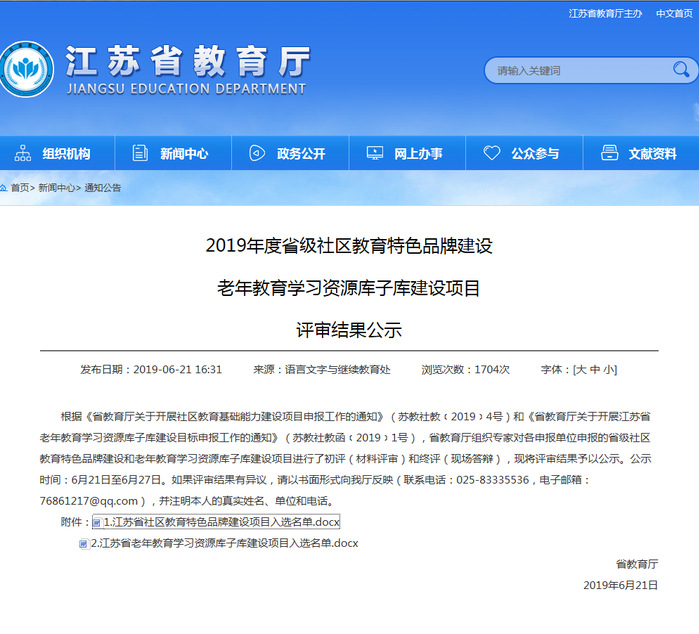 近日,2019年度江苏省社区教育特色品牌建设项目评审结果揭晓,全省共评出16个项目,我校申报的“常州社区创意手工培训”成功入选。