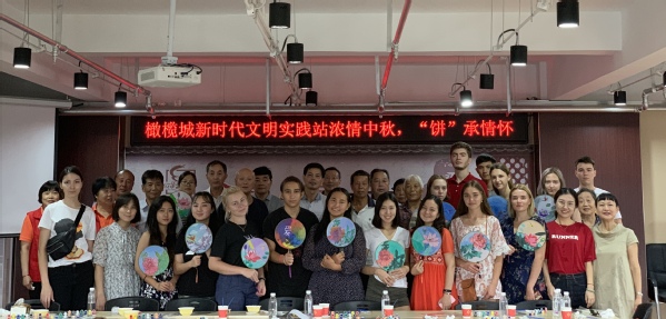 9月10日,国际交流学院20余名留学生与薛家镇橄榄城社区居民一道,开展“我们的节日——浓情中秋 ‘饼’承情怀”联欢活动,提前过了一个喜乐融融的中秋佳节。