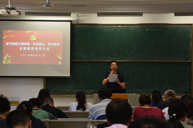 9月12日下午,电气信息工程学院召开“不忘初心、牢记使命”主题教育动员大会。会议由院党委书记李俊生主持。学院党政领导、全体师生党员参加会议。