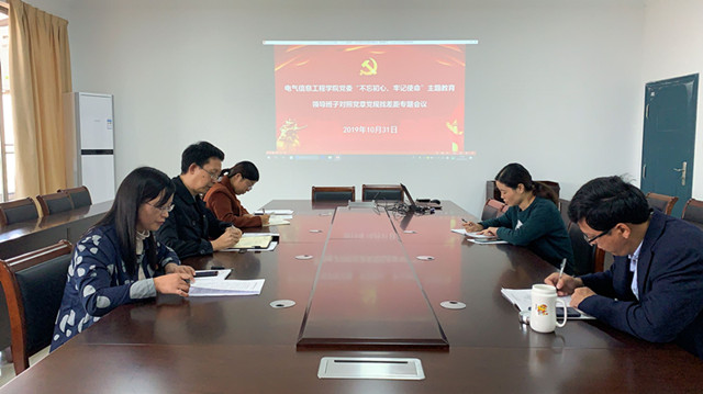 10月31日下午,电气信息工程学院党委领导班子召开“不忘初心、牢记使命”主题教育对照党章党规找差距专题会议。会议由院党委书记李俊生主持。全体党委委员参加会议。