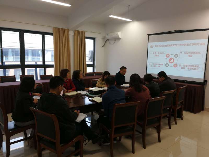 院党委书记张巧凤主持培训并主讲党课。党课梳理了党的十九大报告中关于加强党的基层组织建设的核心思想,结合教工党支部、学生党支部实际工作开展中的重要事项与流程、侧重点、党建工作材料的规范性、支部的工作机制、组织生活会等方面,解读了《中国共产党普通高等学校基层组织工作条例》《中国共产党支部工作条例(试行)》的要点内容。张巧凤指出,各支部书记是党组织基层工作开展的骨干力量,自觉认真学习、贯彻党的十九大报告精神、《条例》等,才可以不断提升自己的政治素养及工作能力,也才可以做强、做细、做实党支部工作,进而才可以提升党支部建设质量与工作水平,为学院、学校发展作出贡献。
