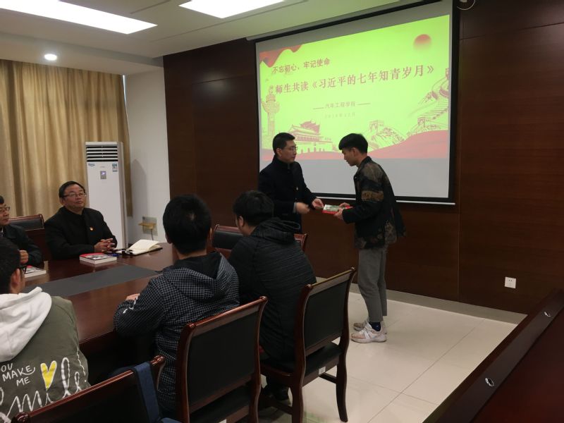 12月6日下午,汽车工程学院党总支举行“不忘初心、牢记使命,师生共读《习近平的七年知青岁月》”主题党日活动。党员教师代表牵手贫困学生,开展共读活动。该院关工委常务副主任戴建国参加活动。活动由汽车工程学院党总支副书记苏频主持。