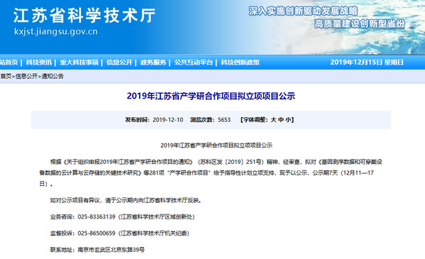 近日,从省科技厅《2019年江苏省产学研合作项目拟立项项目公示》获悉,全省共有281项“产学研合作项目”给予计划立项支持,我校获批22项,立项总数位于全省高校第4位。