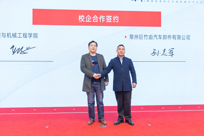 在汽车工程学院党总支书记、院长刘天军主持的汽车论坛环节,进行了薛家国际汽车城职工技能竞赛颁奖仪式;中汽研(常州)汽车工程研究院有限公司副总工程师易爱斌就汽车产业前瞻共性技术研究方向及供给作专题讲座,高屋建瓴的专业见解、深入浅出的行业分析,让与会师生收益颇丰。