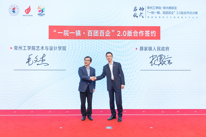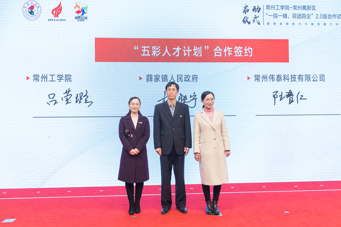启动仪式中,我校艺术与设计学院和薛家镇进行“一院一镇,百团百企”2.0版合作签约;机关党委第六党支部和薛家镇企业投资服务中心党总支进行党建共建签约;计算机信息工程学院团委和薛家镇团委进行团建共建签约;我校与薛家镇、常州市常蒸蒸发器有限公司、江苏天元智能装备股份有限公司、常州伟泰科技有限公司进行“五彩人才计划”合作签约。