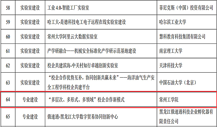 2019年10月,该案例经高校和企业共同组成的专家组严格、公正、公开推选,从400余家单位报送的1100余项案例中脱颖而出,入围314项典型案例展示名单。2019年11月1日-3日,该案例在南京举办的中国高等教育博览会上进行集中展示、路演,经过激烈的现场答辩与提问等环节,最终成功入围典型案例名单。