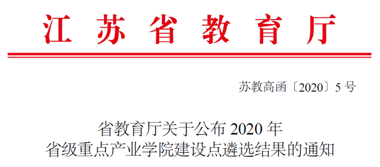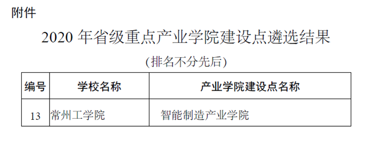 近日,从《省教育厅关于公布2020年省级重点产业学院建设点遴选结果的通知》获悉,我校申报的“智能制造产业学院”成功获批,成为首批省级重点产业学院建设点。本次立项建设的首批省级重点产业学院建设点共15个。