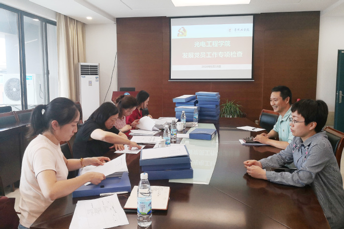 6月19日,校党委常委、党委组织部部长章瑜带队对光电工程学院发展党员工作进行集中检查。学院党委书记蒋渭忠、党委副书记付志荣、党委组织委员赵宇及相关党支部书记参加会议。