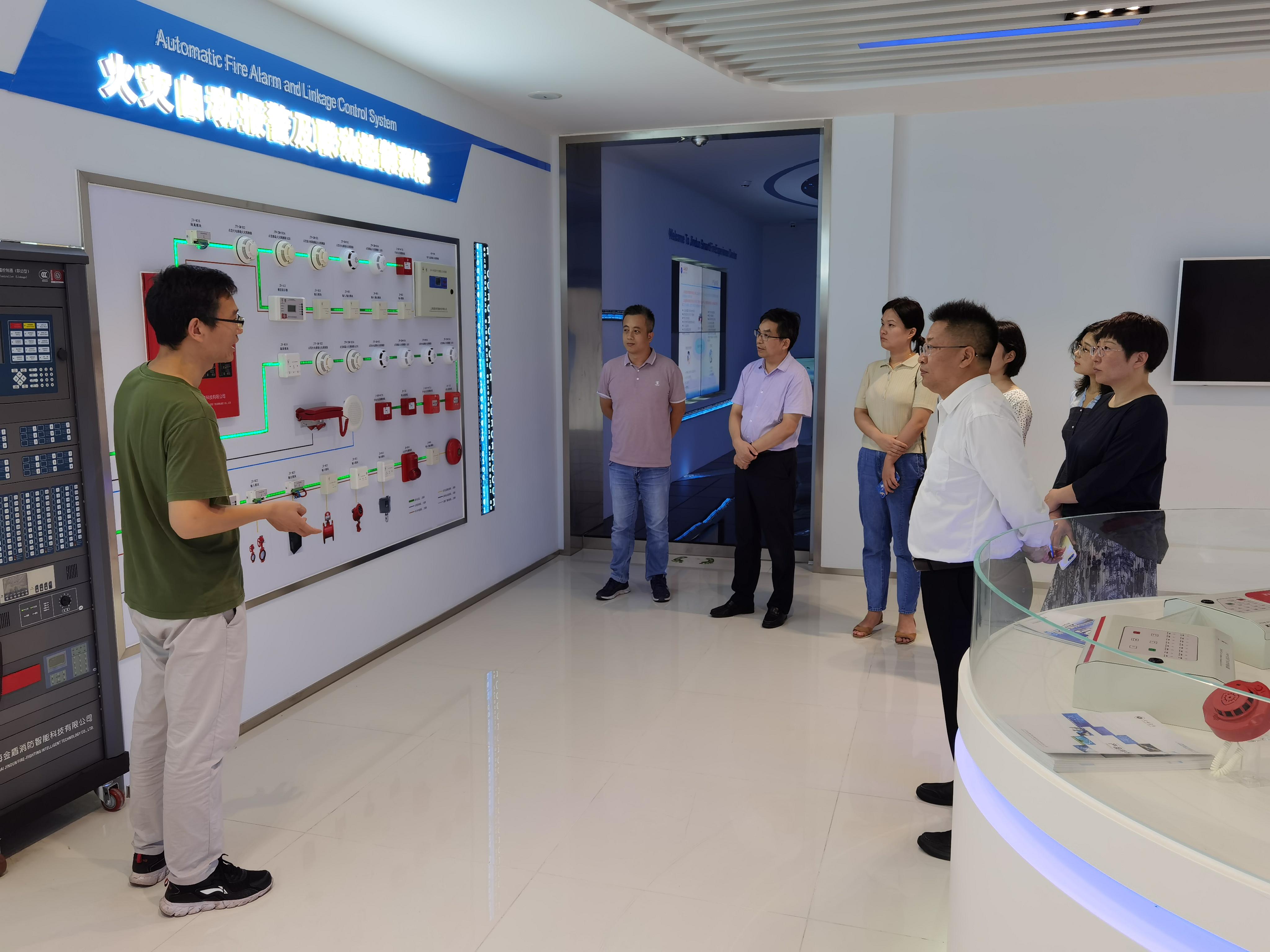 在上海金盾消防产业园,老师们参观了智慧消防体验馆,对金盾集团的发展历程、消防产品研发生产销售服务、火灾自动报警及联动控制系统、城市智慧消防物联网管理平台、消防设施信息监测系统等方面进行了学习调研。