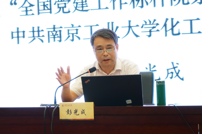 在题为《“五抓五高五到位”,建设新时代优秀院(系)党组织》的报告中,彭光成简要介绍了南京工业大学化工学院的基本情况、党委构成情况及其取得的成绩。作为首批“全国党建工作标杆院系”培育创建单位,该院党委党建工作务实扎实、富有特色和成效。彭光成通过图文并茂、“色香味”俱全的展示,从抓机制建设,提高政治站位,做到党组织领导和运行机制到位;抓功能发挥,提高政治领导力,做到政治把关作用到位;抓阵地建设,提高思想引领力,做到思想政治工作到位;抓落地生根,提高制度执行力,做到基层组织制度执行到位;抓双向融合,提高发展引领力,做到推动改革发展到位;积极作为,形式多样,充分发挥示范引领作用等六个维度,从“党建+”工作新模式;请身边人讲身边事,让党员教育“活”起来;党员作用“四个一”先锋行动记实管理;女生党员“双培养”工程;让积极分子在“交任务夺担子”中成长等五个维度,精彩分享了党建工作的主要举措、特色做法等“独家秘笈”。