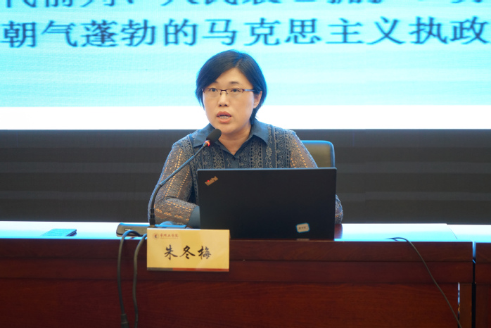 朱冬梅主讲的专题报告《高校基层党支部规范化建设与工作创新》站位高、立意深。她从对十九大报告、中共教育部党组发布的有关文件内容的解读出发,帮助大家切实了解高校基层党建工作的目标要求。结合自身的工作经历、经验,她就《江苏省普通高等学校基层党支部工作标准》《中国共产党支部工作条例(试行)》《新时代江苏高校党支部建设“提质增效”三年行动计划(2019-2021年)》的主要内容作了系统梳理和细致解读,帮助大家厘清掌握高校基层党支部建设规范。同时,朱冬梅以事实为依,援用“增强归属感 提升获得感——基于教师成长与发展需要的高校教师党建工作创新”“‘互联网+’背景下高校智慧党建平台建设”“搭建广阔互学共鉴平台促进基层党建融通发展——南航‘院级党组织书记论坛’”“南京理工大学党建标杆管理”等四个现实案例,生动介绍了高校基层党建工作创新的特色经验、具体路径和方法。
