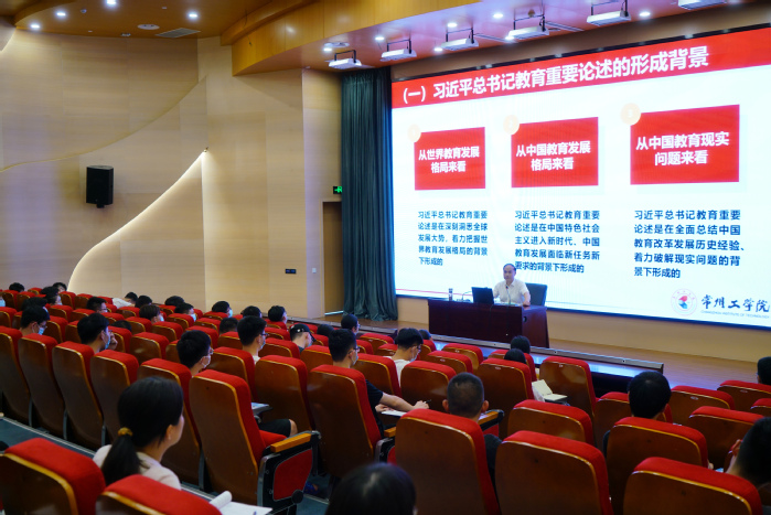 9月7日下午,校党委书记曹雨平以“培养德智体美劳全面发展的社会主义建设者和接班人”为主题,讲授《形势与政策》开学第一课,向青年师生宣讲《习近平总书记教育重要论述讲义》。汽车工程学院、光电工程学院70名学生,以及相关教师聆听讲座。