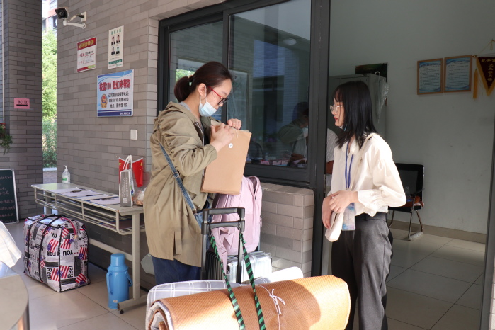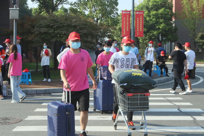 给新生带来温暖的,还有由老师和老生组成的“红马甲”团队。早上5:30,晨光微露,校团委老师与学生志愿者就赶往常州汽车客运总站、火车常州北站,引导从汽车站、火车站前来的新生有序接受测温、材料验证,乘坐接驳大巴。学生志愿者随同新生进校的途中,热心为新生讲解大学生活的点滴和校内景观等,并设置有奖问答活动,为新生答疑解惑,帮助他们了解与学校、与大学生活学习等相关的问题。从进校、搬运行李、入住宿舍到报到手续办理,各二级学院师生志愿者悉心为新生提供“一对一”全程服务,保障了全体新生顺利安全入学。为“新”而动,感动人心。家长们纷纷表示,虽然不能陪孩子进校园,但有老师和学长学姐的引导与帮助,足够放心的。也希望孩子们从独自进校门的那一刻起,实现真正的成长。