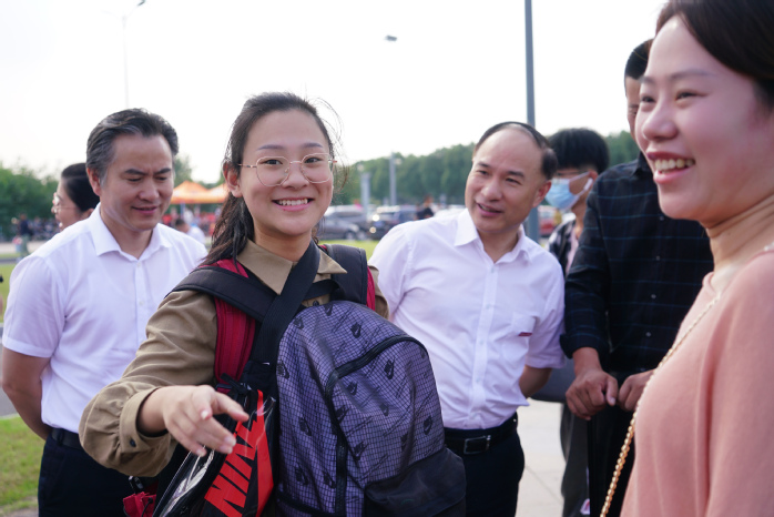 迎新现场,校领导曹雨平、汤正华、王传金、朱锡芳亲自督阵指挥。他们在相关职能部门负责人陪同下,顶着秋阳深入两个校区迎新一线,详细了解迎新工作进展和新生报到情况。在各二级学院接待点,他们与新生亲切交流,帮新生提行李,嘱咐他们要及时向不能陪同入校的家长报平安;为抽取到世界十大名著福袋的新生亲手送上书籍,鼓励他志存高远、认真学习、增长才干;向全体工作人员送去亲切问候,为迎新各项工作有序开展表示肯定。在学校各个大门口,为了尽量让等候的家长安心、舒心,校领导详细察看家长休息区域休息椅、饮用水等供应情况;对家长们对学校相关安排的充分理解和大力支持表示感谢。在绿色通道处,曹雨平、汤正华为23位家庭经济困难学生送上了装有勤工助学岗位申请表、午餐券、心愿单的“爱心红包”,勉励他们乐观进取,自强不息,努力成长为对社会有用的人。今年,全校共有393名家庭经济困难学生享受绿色通道各项服务。
