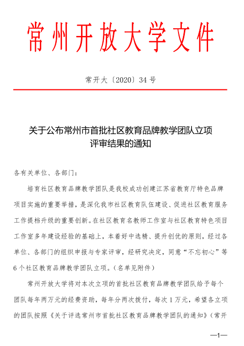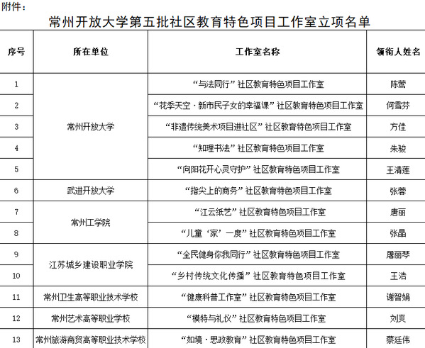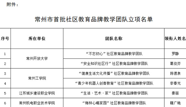 近日,常州开放大学公布常州市社区教育特色品牌项目立项评审结果,我校继续教育学院陈德泉领衔的“健康生活文化传播”团队、计算机信息工程学院李春光领衔的“青少年机器人创客教育”团队获首批社区教育品牌团队立项,艺术与设计学院唐丽领衔的“江云纸艺”项目工作室、师范学院张晶领衔的“儿童‘家’一度”项目工作室获社区教育特色项目工作室立项。社区教育特色品牌项目建设以来,我校已成立五批社区教育特色工作室,带动了更多师资团队参与社区教育,为广大社区居民提供了更多更好的优质教育服务。