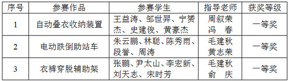 近日,第九届全国大学生机械创新设计大赛慧鱼组(2020)竞赛暨第十一届全国慧鱼工程技术创新大赛在温州大学现场评审,我校航空与机械工程学院/飞行学院表现突出,推荐的《自动叠衣收纳装置》《电动跌倒助站车》《衣裤穿脱辅助架》3件作品全获一等奖,其中“自动叠衣收纳装置”获得推荐参加全国大学生机械创新设计大赛决赛的资格。