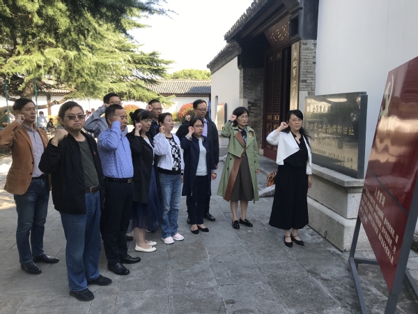 在新四军指挥部旧址,中心组全体成员还面对党旗,重温了入党誓词,更加坚定了“不忘初心、牢记使命”的信念和决心。