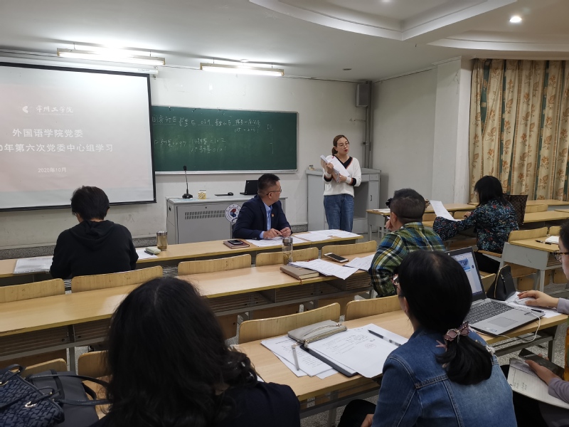 10月15日下午,外国语学院党委理论学习中心组在105会议室举行2020年第六次集体学习会。学院党委书记刘一鸣主持会议,全体党委委员、党支部书记和非中共党员院领导参加学习。