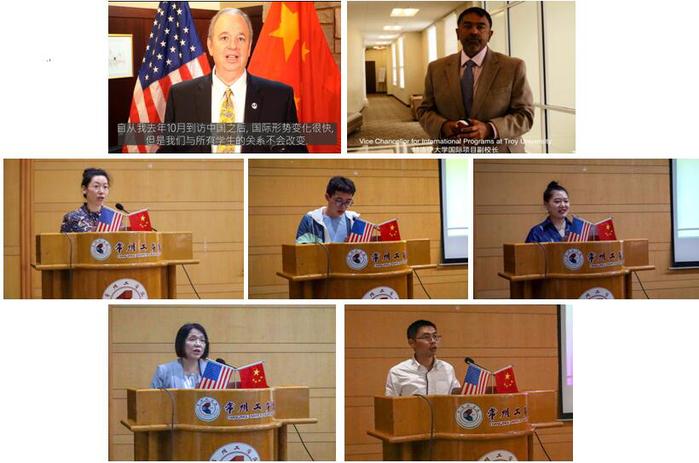 为欢迎新同学的到来,两所美方合作院校特别录制了学校介绍和欢迎视频。威斯康星大学欧克莱尔分校校长詹姆斯•施密特博士在致辞中表达了对两校未来合作的期许,欢迎新生们加入欧克莱尔大家庭,强调“自去年10月到访中国以后,虽然国际形势变化很快,但我们与所有中国学生和友校的关系不会改变”。特洛伊大学副校长苏赫•埃博瓦拉博士携多位教师及学生会主席向新生介绍了特洛伊大学的学习、生活环境,以及疫情下校园的防控措施,并承诺将为到来的中国学生提供安全、优质的服务及保障。