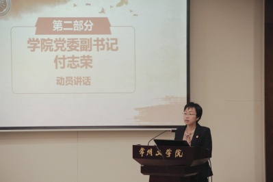 在激情昂扬的团歌中,学院党委副书记付志荣作开班动员讲话,她强调实施青年马克思主义者培养工程是共青团的一项重要政治任务,对在场学员提出希望:一是希望大家学有所思,增强理论学习的厚度;二是希望大家能学有所践,增强实践锻炼的强度;三是希望大家能学有所悟,增强服务同学的热度;四是希望大家能学有所为,增强先锋模范的亮度。