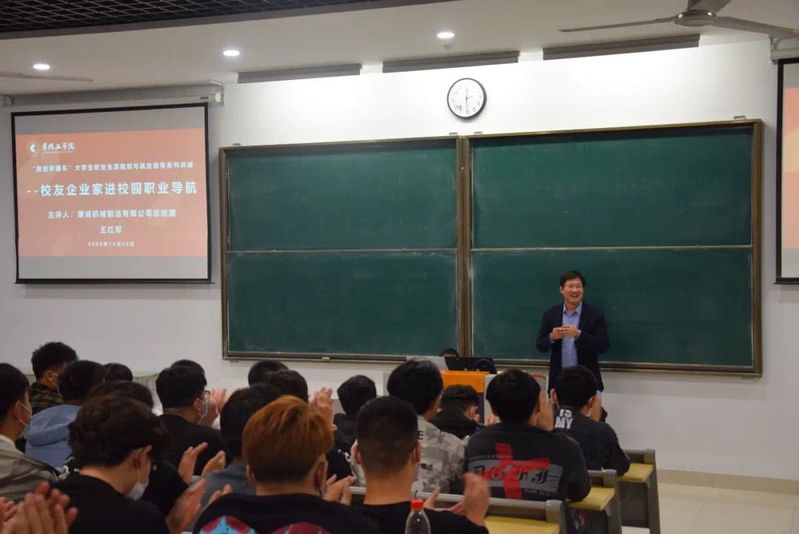 为向学生传播汽车文化,普及就业知识,汽车工程学院举办第八期汽车大讲堂“就业直通车”大学生职业生涯规划与就业指导系列讲座——校友企业家进校园职业导航,康诚机械制造有限公司总经理王红军应邀参加演讲。