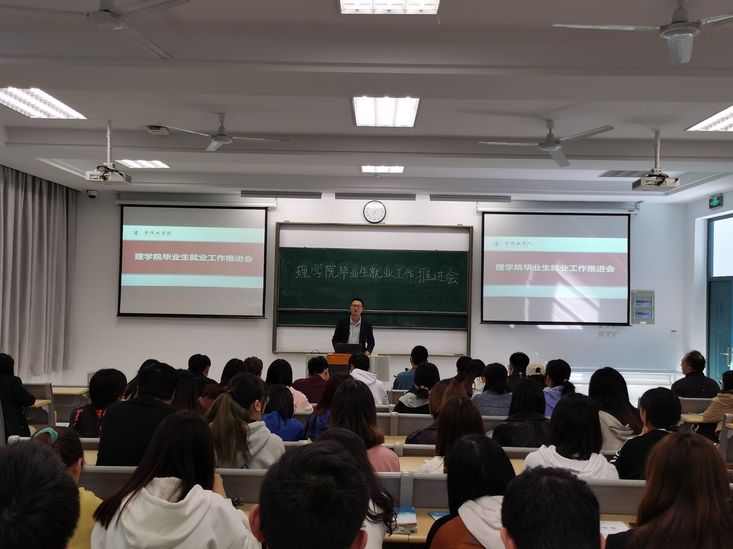 10月22日下午,理学院在天枢楼B107举行了2021届毕业生就业工作推进大会,会议由学院院长兼党总支书记陈荣军主持,党委学生工作部(处)副部(处)长曹其、理学院党总支副书记郦江妍、学工办主任杜珊珊及17级毕业班同学参加了会议。