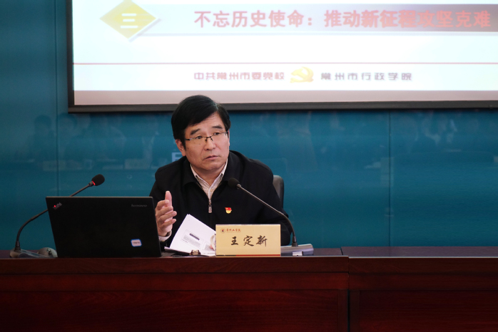 在题为《把握时代大势,阐释中国道路》的专题辅导报告中,王定新坚持以习近平新时代中国特色社会主义思想为指导,以《习近平谈治国理政》第一卷、第二卷为引,从着眼两个大局:谋划新时代治国方略,高举伟大旗帜:展现新思想发展成果,不忘历史使命:推动新征程攻坚克难三个维度,具体阐述了《习近平谈治国理政》第三卷的时代背景和历史方位、框架结构和基本内容、核心要义和内在逻辑。