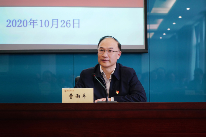 10月26日下午,校党委理论学习中心组开展10月份集中学习,特邀中共常州市委党校常务副校长、常州行政学院副院长王定新作《习近平谈治国理政》第三卷专题辅导报告。校党委理论学习中心组(扩大)全体成员参加学习。校党委书记曹雨平主持报告会。