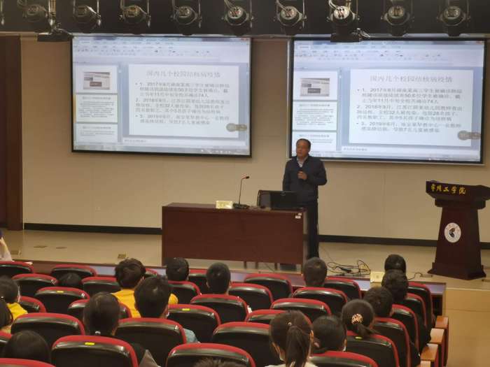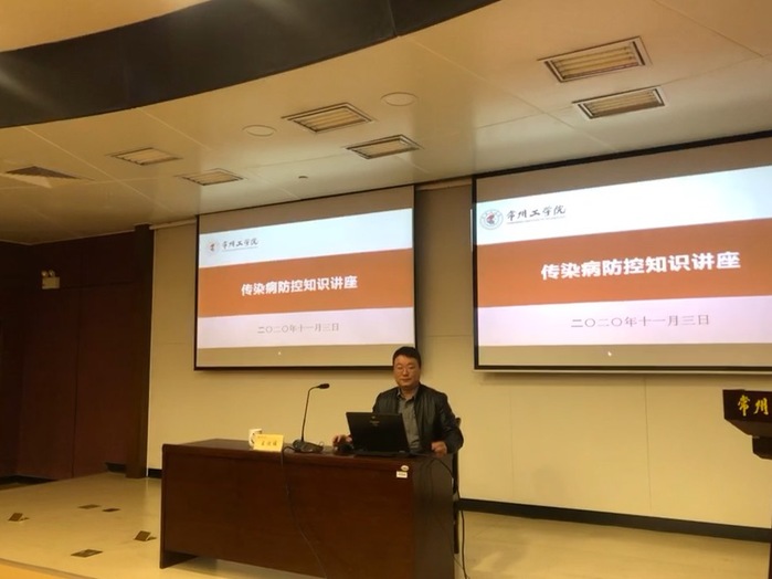 11月3日下午,我校后勤管理处邀请常州市第三人民医院学科带头人、肺科主任王怀诚和常州市新北区疾控中心副主任蒋峰来校做传染病防控知识讲座,我校师生以及物业后勤约140余人在图书馆一楼报告厅聆听了讲座。