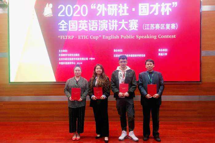 11月5日-7日,2020“外研社·国才杯”全国英语演讲大赛江苏赛区总决赛在南通大学圆满落幕。经过三天的激烈角逐,我校外国语学院商务英语专业的杨玥芸同学荣获二等奖,蒋欣老师荣获指导教师二等奖;光电工程学院测控专业的谈启亮同学荣获三等奖,田国民老师荣获指导教师三等奖。