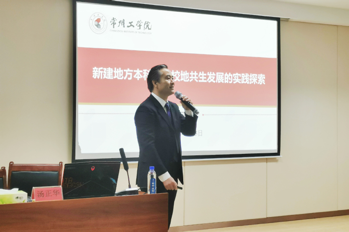 汤校长报告的题目是《新建地方本科高校校地共生发展实践探索》。他结合我校应用型大学建设,特别是现代产业学院建设的实践探索,提出了“打造具有鲜明应用型特征的类型教育”“新建本科高校办出特色的新策略是构建校地共生发展关系”“现代产业学院是校地共生发展的新型载体”等观点,受到与会专家的关注和赞同。