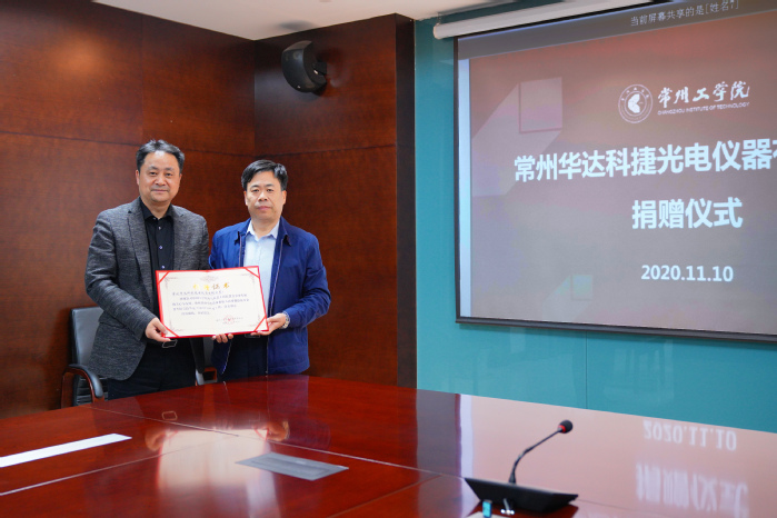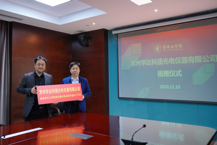 11月10 日,常州华达科捷光电仪器有限公司董事长兼总经理、杭州巨星科技股份有限公司副总裁、我校电气信息工程学院85级校友张瓯一行来校,向学校捐赠激光雷达等教学科研实验设备,价值86.7万元。
