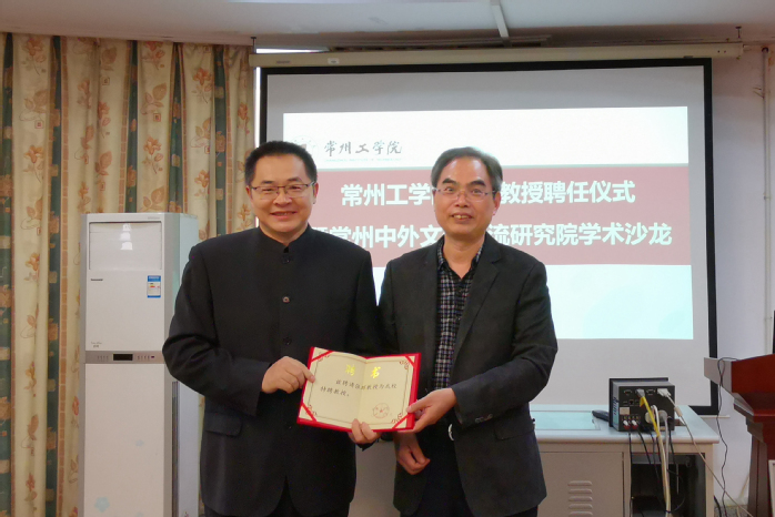 11月10日,在外国语学院举行的“常州工学院特聘教授聘任仪式暨常州市中外文化交流研究院学术沙龙”中,南京师范大学特聘教授、博士生导师张辉受聘为我校特聘教授。副校长朱海山为其颁发聘书。