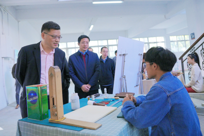 11月11日,副校长张兵参观巫山路校区展区大学生创新创业成果展。教务处、教学质量评估中心、产教融合工作办公室、学生工作部(处)、国际交流合作处、校友联谊会办公室、校团委、创新创业学院相关人员陪同。巫山路校区二级学院相关领导、师生一起观看。作品精彩纷呈,现场气氛热烈。