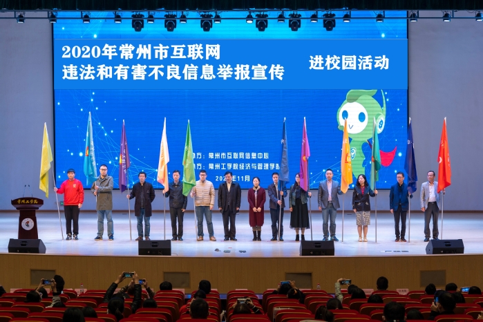11月13日上午,由常州市互联网信息中心主办,经济与管理学院承办的“2020年常州市互联网违法和有害不良信息举报宣传进校园活动”在我校大学生文化艺术中心礼堂举行。常州市互联网新中心主任蒋志文、副主任卢文云、经济与管理学院党委书记张巧凤、院长钱明霞、常州各辖市区网信办、中国常州网、中吴网、化龙巷等十一支网络文明志愿者队伍近200人参加活动。活动分户外和室内两部分。