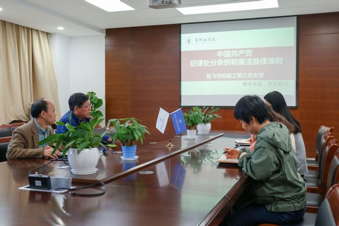 根据学校《关于组织开展第十三届“校园廉洁文化活动月”的通知》(常工纪〔2020〕2号)精神,为充分发挥廉洁文化的教育、示范、熏陶、导向作用,以增强党员抗腐防变意识,从源头上有效防止和坚决杜绝违规违纪违法现象的发生,航空与机械工程学院/飞行学院从10月以来,以支部为单位,在全院范围内开展了“廉洁从教立德树人”警示教育专题组织生活会。