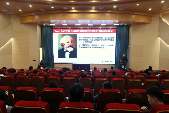 11月13日,校党委副书记、副校长周全法赴理学院上《形势与政策》课,宣讲《习近平总书记教育重要论述讲义》(以下简称《讲义》)。该院19级学生、相关老师聆听宣讲。