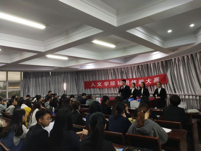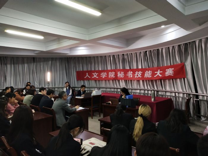 11月13日下午,人文学院第八届秘书技能大赛在巫山路校区一号楼408会议室正式举行。文秘系相关老师担任评委,副院长王振军致开幕词,强调秘书学专业同学应高度重视秘书实训与实践,在实践中不断提升自己的创新能力和专业水平。