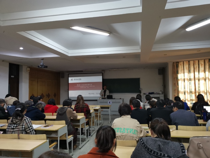 11月11日下午,外国语学院举行《习近平谈治国理政》第三卷集中学习会,马克思主义学院沈伟老师作专题辅导报告。全体教职工参加,学院党委书记刘一鸣主持会议。