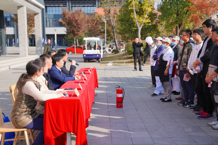 为提升食堂安全紧急情况应对处置能力,强化师生员工安全意识及安全逃生技能,11月13日下午,后勤管理处、保卫部(处)联合组织开展食堂火灾紧急疏散演练。辽河路校区全体食堂员工、近百名师生参加演练。副校长朱锡芳亲临现场并发出启动指令。