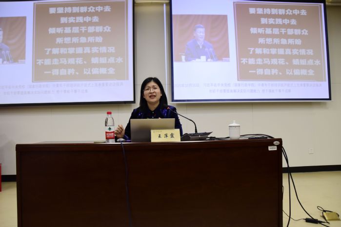 讲座中,王萍霞引用习近平总书记在中央党校(国家行政学院)中青年干部培训班上的重要讲话,对全体学员提出七项工作能力要求,即政治能力、调查研究能力、科学决策能力、改革攻坚能力、应急处突能力、群众工作能力、抓落实能力。接着,她从《习近平谈治国理政》第三卷的背景、主要内容与创新点、重要意义,以及如何进行学习四个方面进行系统阐释。她勉励全体学员:要认真研读原文原著,精准把握精髓要义;要联系第一卷和第二卷内容,系统开展学习;要与“四史”学习相结合,做到融会贯通;要与正在做的事结合学,做到学以致用。