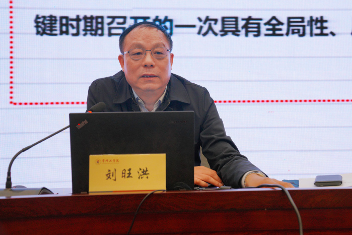 报告中,刘旺洪从全会的基本情况和重大意义,深刻认识新发展阶段的重大意义、有利条件和重要特征,准确把握2035年远景目标和“十四五”时期的指导方针、主要目标、重点任务,牢牢把握构建新发展格局的战略构想和重要着力点,坚持党的全面领导等5个方面,以历史唯物主义的眼光,对全会精神进行了系统深入的阐释和全面准确的解读。