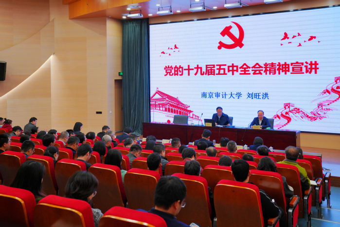 根据江苏省委宣讲团统一安排,11月20日上午,江苏省委宣讲团成员、南京审计大学党委副书记、校长刘旺洪来校宣讲党的十九届五中全会精神。校党委理论学习中心组全体成员、全体中层干部、马克思主义学院全体教师、青马工程学员代表近140人聆听报告。报告会由校党委书记曹雨平主持。