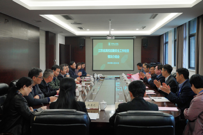 11月19日,江苏省高校后勤安全检查第十检查组来校检查指导后勤安全工作。本次检查分情况介绍会、现场检查、台账查阅和检查反馈会四个环节。校领导曹雨平、汤正华、朱锡芳携党委办公室/院长办公室、学生工作部(处)、资产管理处、后勤管理处、保卫部(处)等职能部门负责人参加检查。