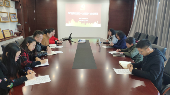 编者按:党的十九届五中全会是我们党在全面建成小康社会胜利在望、全面建设社会主义现代化国家新征程即将开启的重要历史时刻召开的一次十分重要的会议。学习好、宣传好、贯彻好全会精神,是当前和今后一个时期全党全国的重要政治任务。按照校党委的统一部署,全校迅速兴起学习宣传贯彻党的十九届五中全会精神热潮,各二级党组织通过中心组集中学习研讨,将十九届五中全会的精神实质内涵融入“十四五”规划,切实把学习成效转化为推动学校事业高质量发展的智慧与力量。