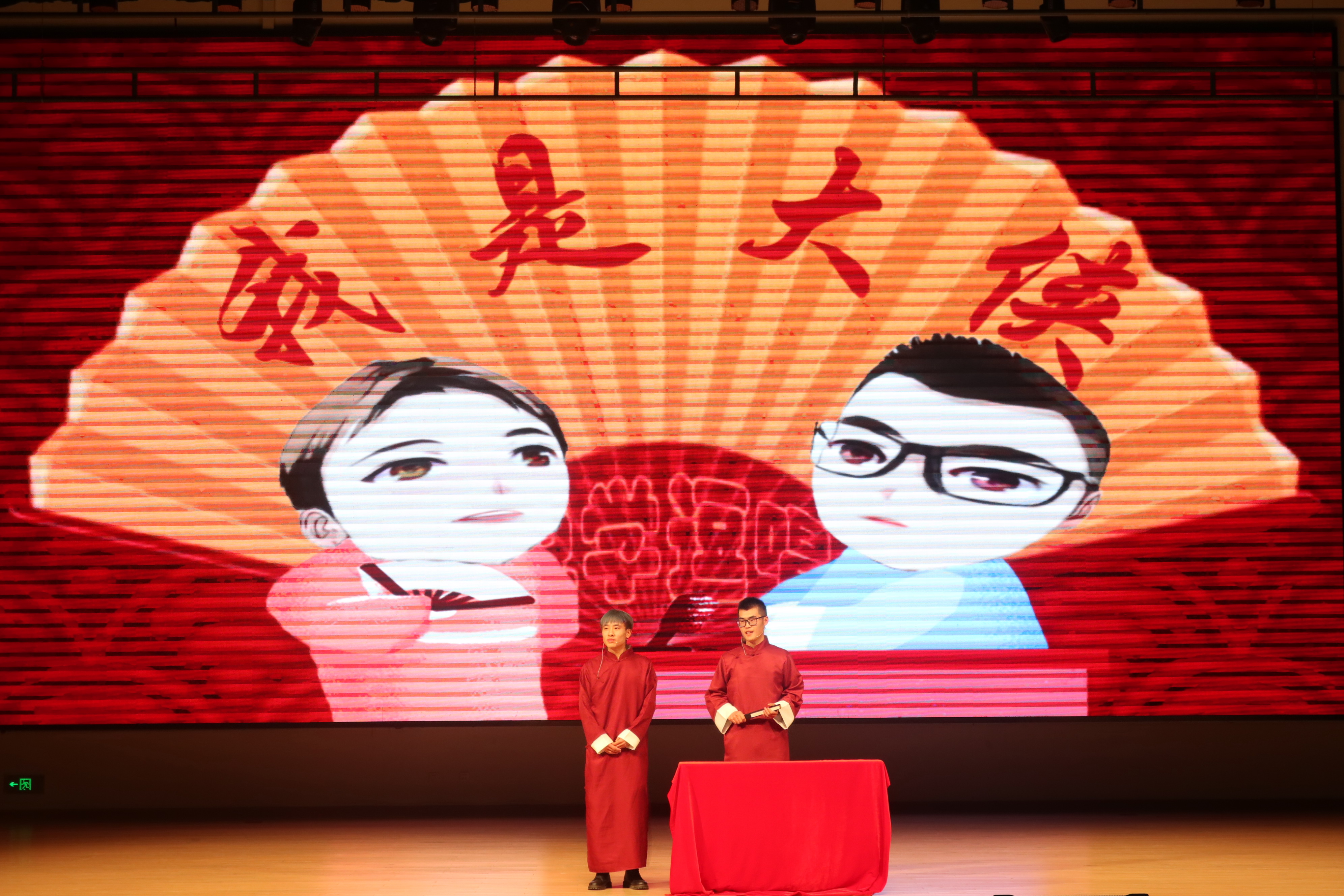 随着舞台灯光的亮起,在《Turn it up》的歌声中,20级女生们活力四射的爵士舞表演瞬间点燃了全场氛围。接下来,相声《我是大侠》、吉他指弹《弗拉门戈舞曲》、小品《听风》、诗朗诵《这样的人》、跆拳道与空手道表演……本次晚会共有13个表演节目,各类节目形式多样且独具特色与魅力,为现场观众呈现出丰富的视听盛宴,台上灯光闪耀、节目精彩纷呈,台下师生欢呼声此起彼伏、气氛热烈,尽显新时代大学生的青春活力。值得一提的是,本次晚会设置了师生互动环节,其中的校园文化有奖竞猜过程更是让现场观众踊跃抢答、沉浸其中。晚会在大合唱《我爱你中国》节目中落下帷幕。节目结束后,全体老师上台同演职人员合影留恋,为本次盛会画上圆满的句号。