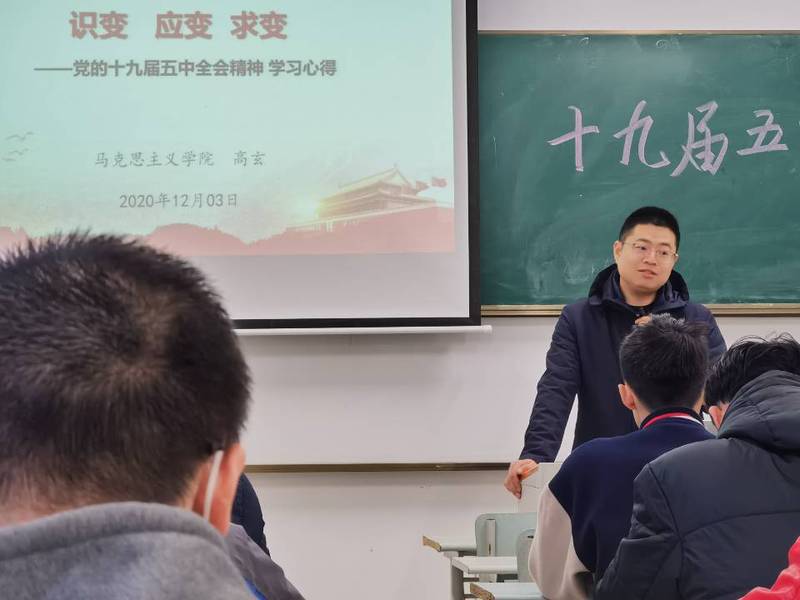 培训特别邀请了马克思主义学院高玄博士进行十九届五中全会精神宣讲。高玄介绍了我国在全面建设社会主义现代化国家新征程的举措,通过“准确识变,科学应变,主动求变”,加深了同学们对党的十九届五中全会精神的理解。